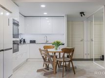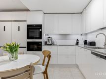 - Keittiön varusteet: Jääkaappipakastin (2 kpl), erillisuuni, liesituuletin, astianpesukone ja mikroaaltouuni. Liesi: Induktioliesi. Työtason materiaali: Kivi.