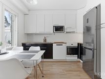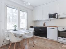 - Varustus: Induktioliesi, liesituuletin, uuni, hana, allas, astianpesukone, jääkaappi/pakastin.
