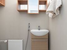 - Pesutilojen kuvaus: Varustus: Suihku, suihkuseinä, pesukoneliitäntä, hana, allas, peilikaappi, allaskaapisto, lattialämmitys. Koko tila on laatoitettu. Erillisen WC:n kuvaus: Varustus: Wc istuin, hana, allas, allaskaapisto. Lattia laattaa ja seinät maalattu.