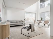 Tässä valoisassa huoneistossa on avara pohjaratkaisu, joka mahdollistaa monipuoliset sisustusvaihtoehdot. Suuret ikkunat tuovat luonnonvalon kauniisti osaksi arkea ja korostavat kodin korkealaatuista viimeistelyä. Keittiö on varusteltu huippulaadukkain materiaalein, ja saunatila tarjoaa mahdollisuuden rentoutua omassa rauhassa.