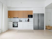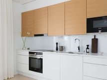 - Keittiön (Puustelli) varustukseen kuuluu täyskorkeat jääkaappi ja pakastin, induktioliesi, liesituuletin, uuni, mikro, astianpesukone. Kvartsikivinen työtaso, välitilassa lasilevy, seinät ja katto maalattu.