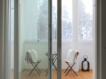 - Koko huoneiston levyinen suuri lasitettu parveke, näkymät merelle.
