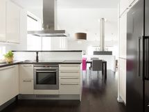 liesituuletin, astianpesukone. Työtasot: laminaatti. Lattia: parketti. Seinät: