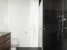 - Pesutilojen kuvaus: yläkerta: WC, Suihku, suihkuseinä, peili, allaskaappi, lattialämmitys