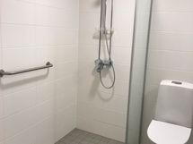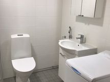 - Suihkuseinä, Pesukonevalmius, Peilikaappi, Allaskaappi, Kokonaan laatoitettu