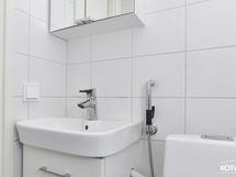 - Pesutilojen varusteet: WC-istuin, suihku, suihkuseinä, pesukoneliitäntä, peilikaappi, pesuallas, allaskaappi ja rättipatteri. Erillisten WC:n lukumäärä: 1. Erillisen WC:n varusteet: WC-istuin, peilikaappi, pesuallas ja allaskaappi.