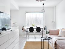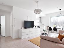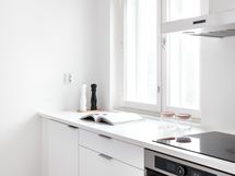 - Keittiön varusteet: Jääkaappipakastin, liesi, liesituuletin, erillisuuni ja astianpesukone. Liesi: Induktioliesi. Työtason materiaali: Laminaatti. Tyylikäs ja valoisa avokeittiö, jossa vaaleat pinnat, selkeä linjakkuus ja toimiva pohjaratkaisu luovat modernin kokonaisuuden. Keittiössä on runsaasti lasku- ja säilytystilaa.