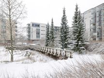 Piennemmästä makuuhuoneesta ja saunasta Soittokunnanpolulle. Ilmansuunta pohjoinen.