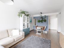 - Olohuoneesta omalle parvekkeelle/yhtiön vehreälle sisäpihalle. Ilmansuunta etelään.