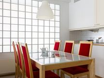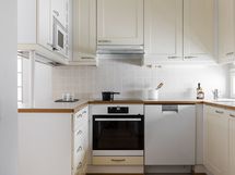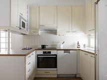 - Liesi: erillisuuni, liesitaso. Työtasot: laminaatti. Kylmäsäilytys: jääkaappi, pakastin. Varustus: astianpesukone, kiinteät valaisimet, liesituuletin / hormi.