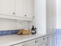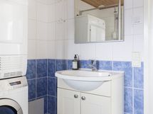 - Pesutilojen kuvaus: Kylpyhuoneen yhteydessä kodinhoitotila. Varustus: suihkuseinä, pesukoneliitäntä, lattialämmitys, suihku, peili, kiinteät valaisimet, kylpyhuonekaapisto. Erillisen WC:n kuvaus: Peili.