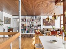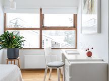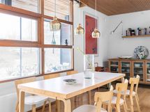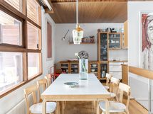- Täydellisesti talon tyyliin ja ilmeeseen sopiva HTH-keittiö. Vaaleita kaapistoja rytmittää kivasti tammiset kaapistot ja tasot, jotka antavat keittiölle ajan henkeen sopivan tunnelman. Kiva yksityiskohta on keskellä keittiötä oleva kattoikkuna, josta tulee mukavasti valoa tähän tilaan.