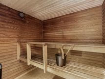- Kuvaus: Saunan seinät ja katto on paneloitu, lattia keraamista laattaa. . sähkökiuas