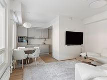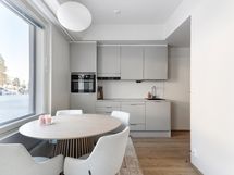 - induktioliesi (2 levyä), liesituuletin, uuni/mikro, jääkaappi-pakastin,