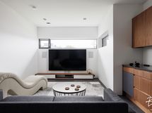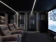 - Kellariin asennettu ilmanvaihto, ilmastointi, akustointi, rakennettu väliseinä kuntosalin ja kotiteatterin väliin. Kuntosalissa Ecophon-akustolevyt katossa, kumirouhematto, peiliseinä ja äänentoisto. Kotiteatterissa huippuluokan akustointi, äänentoisto ja kuva (suunnittelija MarekSound).