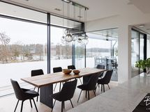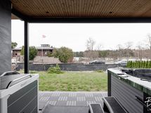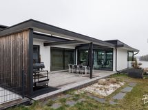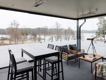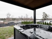 - Yläkerran parveke lasitettu. Alakerran terassille asennettu maisemoivat, motorisoidut ulkoverhot ja niiden taakse Novosan kuuden henkilön poreamme ja avantopool kylmäallas.