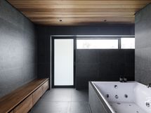 - Pesutilojen kuvaus: Yläkerrassa kaksi kylpyhuonetta, joista toinen master bedroomin yhteydessä. Alakerrassa suuri SPA-osasto, jossa on suuri sauna ja sisäporeallas. Ulkona spa-osaston terassilla kylmä-allas (Avantopool) sekä suuri ulko-poreallas (Novosan 6 henk).