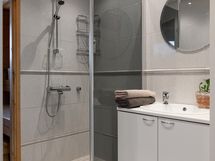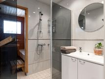 - Pesutilojen varusteet: Lattialämmitys, allaskaappi, suihkuseinä, peili ja pesuallas. Erillisten WC:n lukumäärä: 2. Erillisen WC:n varusteet: Lattialämmitys, wc-istuin, allaskaappi, peili, pesuallas ja bidee-suihku.