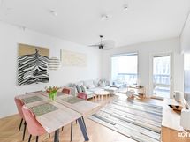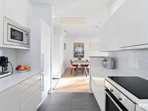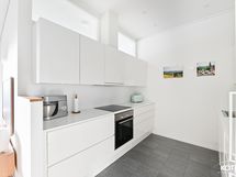 - Keittiön varusteet: Jääkaappipakastin, erillisuuni (Kiertoilma), liesi, liesituuletin, mikroaaltouuni ja astianpesukone (2022). Liesi: Induktioliesi. Työtason materiaali: Corian. Tyylikäs vaalea keittiö laadukkailla Corian tasoilla.