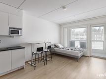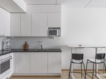 - Keittiön varusteet: Jääkaappipakastin, uuni, liesi, liesituuletin ja astianpesukone. Liesi: Induktioliesi. Työtason materiaali: Laminaatti.