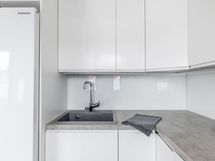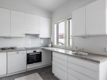 - Keittiön varusteet: Uuni, liesi, liesituuletin, astianpesukone, mikroaaltouuni ja jenkkikaappi. Liesi: Induktioliesi. Työtason materiaali: Laminaatti. Keittiöremontti 2017.Keittotilan/-komeron seinät on kaadettu ja keittiöstä tehty avomallinen. Kaapistot ja kodinkoneet on uusittu. Lisäksi keittiön lattiaan asennettu vinyylilaatta.