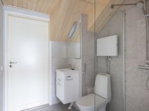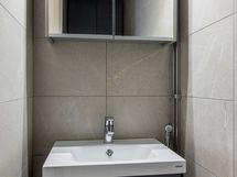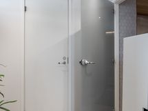 Yläkerran pesutilat: saneerattu täysin. Kuivapuristelaatat (Studio Tortora, Panaria Glenn, Colorker Madison Bone), sadesuihku (Grohe Euphoria), pyyhekuivain, mittatilauslauteet (Finlaude Luxe), Harvia Glow-kiuas, valokaulus kiukaan ympärillä, led-nauhavalaistus löylyhuoneessa, allaskalusteet (Pisara, Temal) ja hanat (Grohe), maitolasiväliovi (Vihtan), wc-istuin Ido. Kylpyammeen asennusmahdollisuus (liitännät valmiina pohjapiirrosten mukaisesti).