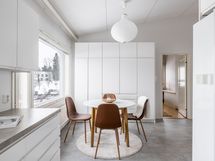 Keittiö: rakenteelliset muutokset, kaapistot ja kodinkoneet, vinyylilaatta, yläkerran seinien maalaus.