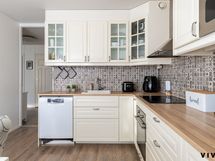 - Keittiön varusteet: Jääkaappi, erillinen pakastin, erillisuuni, liesi, liesituuletin, mikroaaltouuni ja astianpesukone