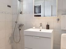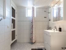 - Pesutilojen varusteet: WC-istuin, suihku, pesukoneliitäntä, peilikaappi, pesuallas ja allaskaappi. Erillisten WC:n lukumäärä: 1. Erillisen WC:n varusteet: WC-istuin, peilikaappi, pesuallas, allaskaappi ja bidee-suihku.