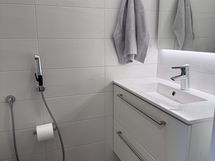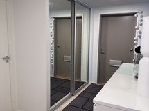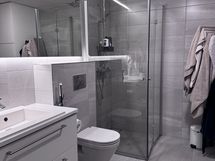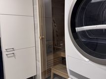 - Suihku, Suihkuseinät, Kuivausrumpu, Pesukone, Kylpyhuonekaapistot, Valaistu peili, Laattalattia, Erillinen WC, Lattialämmitys, Sähkösauna