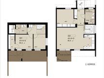 Vapautumassa tilava kaksitasoinen rivitaloneliö. Asunnon sisäänkäynti on yläkerrassa, jossa sijaitsevat yksi kylpyhuone, keittiö, olohuone, yksi makuuhuone sekä parveke. Yläkerran tilat muodostavat selkeän arjen kokonaisuuden, jossa keittiö ja olohuone ovat omissa yhteyksissään.