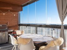 Tämä vuonna 2017 valmistunut upea ja edustava talo sijaitsee omalla tontilla, ja sen hoitovastike on edullinen, vain 172 € / kk. Pohjaratkaisu on toimiva – tilojen puolesta asunto soveltuu erinomaisesti myös pariskunnalle. Valtava lasitettu parveke tuo merkittävää lisäarvoa asumiseen. Upeat näkymät avautuvat suoraan meren suuntaan.
