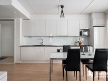 - VARUSTUS: Jääkaappi/pakastin, erillisuuni, keraaminen liesi, liesitaso, astianpesukone, liesituuletin, kaapistot, kiinteät valaisimet.