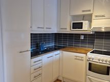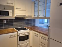 - Suuri tiskipöytä, Paljon työskentelytilaa, Paljon kaappitilaa, Puutasot, Keraaminen liesi, Jää-pakastinkaappi