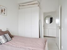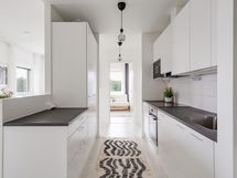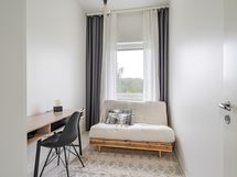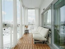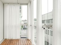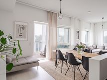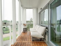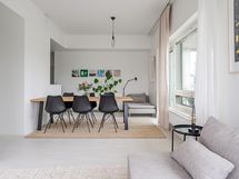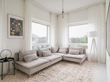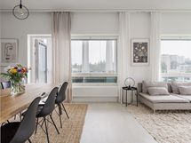 Normaalia korkeampi huonekorkeus tekee tilasta avaran tuntuisen ja suuret ikkunat tuovat ihanasti luonnonvaloa huoneistoon. Tilava lasitettu parveke toimii loistavana lisäoleskelutilana lämpiminä päivinä.