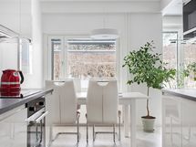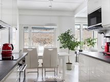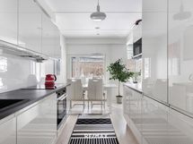 - Keittiön varusteet: Liesi, liesituuletin, mikroaaltouuni, astianpesukone, uuni ja jääkaappipakastin. Liesi: Induktioliesi. Työtason materiaali: Laminaatti. Keittiössä raikas, kiiltävä Parma-keittiö, integroidut laadukkaat kodinkoneet ja tyylikäs musta komposiitti-allas. Keittiö yhdistyy ruokatilaan.