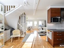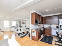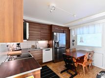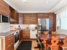 - Keittiön varusteet: Liesituuletin, mikroaaltouuni, liesi, uuni ja jääkaappipakastin. Liesi: Induktioliesi. Työtason materiaali: Laminaatti.