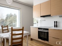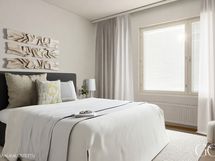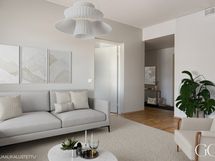 Tervetuloa tutustumaan tähän tyylikkääseen ja hyvin suunniteltuun kotiin, jossa arki toimii ja yksityiskohdat on mietitty huolella. Asunnossa on kolme makuuhuonetta, joista yhdessä on käytännöllinen vaatehuone. Tilava ja valoisa olohuone avautuu suurelle lasitetulle parvekkeelle, jolta on rauhallinen näkymä ilman vastapäisiä taloja – täydellinen paikka rentoutumiseen.