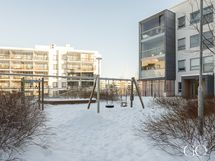 Tapiolan asukaspuisto sijaitsee aivan kodin vieressä ja tarjoaa loistavat puitteet ulkoiluun, leikkiin ja yhdessäoloon.