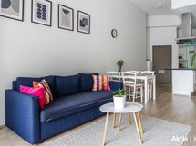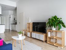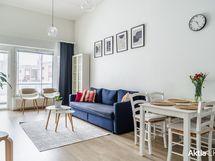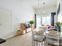 - Huoneistossa on poikkeuksellisen korkea kattokorkeus. Se on valoisa, läpi talon huoneisto.