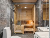- Pesutilojen varusteet: WC-istuin, suihku, pesukoneliitäntä, lattialämmitys, allaskaappi, bidee-suihku ja peilikaappi.