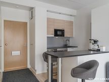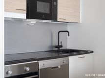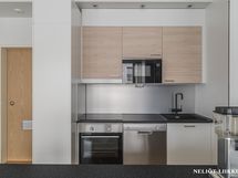 - Keittiön varusteet: Jääkaappipakastin, erillisuuni, astianpesukone, mikroaaltouuni ja liesituuletin. Liesi: Keraaminen liesi. Työtason materiaali: Laminaatti.