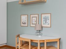 - Pesutilojen varusteet: Suihku, wc-istuin, allaskaappi, peilikaappi ja suihkuseinä. Erillisen WC:n varusteet: WC-istuin, allaskaappi ja peili.