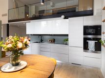 Laadukkaassa avokeittiössä on italialaiset Scavolinin kalusteet ja Mielen kodinkoneet, jotka tekevät kokkailusta nautinnon. Tilavalta parvelta löytyy makuuhuoneen ja kätevän työpisteen lisäksi mittatilaustyönä toteutettu upea kaapisto. Arjen sujuvuutta tuovat lisäksi oma sauna, kaksi wc:tä, reilun kokoinen kylpyhuone/kodinhoitotila.