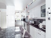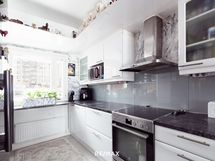 - Keittiön varusteet: Jääkaappi, erillinen pakastin, uuni, liesi, liesituuletin ja astianpesukone. Liesi: Keraaminen liesi. Työtason materiaali: Puu ja pintakalvo laitettu. Avara ja valoisa keittiö jossa on paljon kaappi ja laskutilaa.