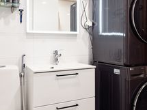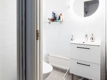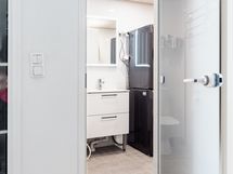 - Pesutilojen varusteet: WC-istuin, suihku, pesukoneliitäntä, lattialämmitys, peili, pesuallas, allaskaappi, bidee-suihku ja vesikiertoinen kuivauspatteri. Pesutilojen kuvaus: Pesuhuone ja sauna uusittu ja todella hyvässä kunnossa. Erillisten WC:n lukumäärä: 1. Erillisen WC:n varusteet: WC-istuin, peili, pesuallas, allaskaappi ja bidee-suihku. Erillisen WC:n kuvaus: Alakerrassa erillinen WC.