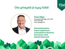 - Tomi Uljas LKV, KiAT, LVV, tomi.uljas@kiinteistomaailma.fi