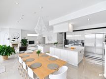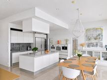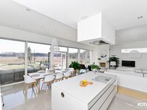 - Keittiön varusteet: Jääkaappi, erillinen pakastin, erillisuuni, liesi, liesituuletin, mikroaaltouuni ja astianpesukone. Liesi: Induktioliesi. Työtason materiaali: Kvartsikomposiitti. Tyylikäs saarekkeellinen A la Carte -keittiö kvartsityötasoilla, laadukkailla Mielen kodinkoneilla sekä Festivo-kylmälaitteella.