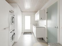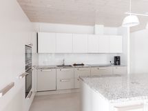 - Liesi: erillisuuni, liesitaso. Kylmäsäilytys: jääkaappi, pakastin. Varustus: liesituuletin, mikroaaltouuni, astianpesukone.