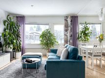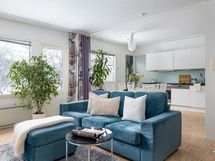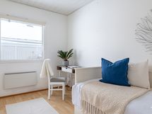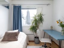- Muuta kauppaan kuuluvaa: Olohuoneen eteläikkunalle asennettu sähkökäyttöinen markiisi, joka jää asuntoon.